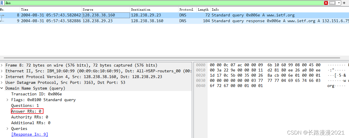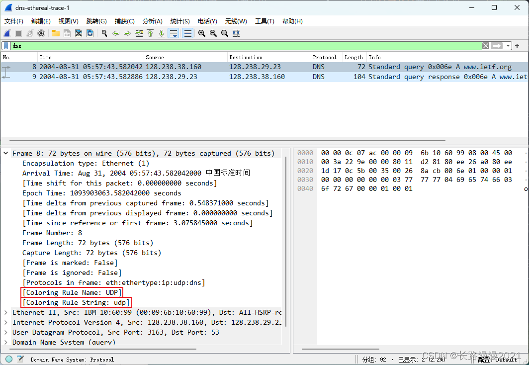 下图是 Wireshark 抓获的查询报文。