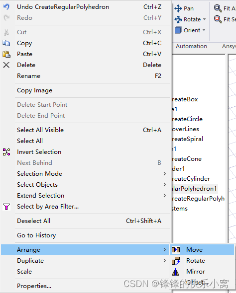 如图1所示,物体模型的移动通过主菜单栏的【Edit】👉【Arrange】进行操作。